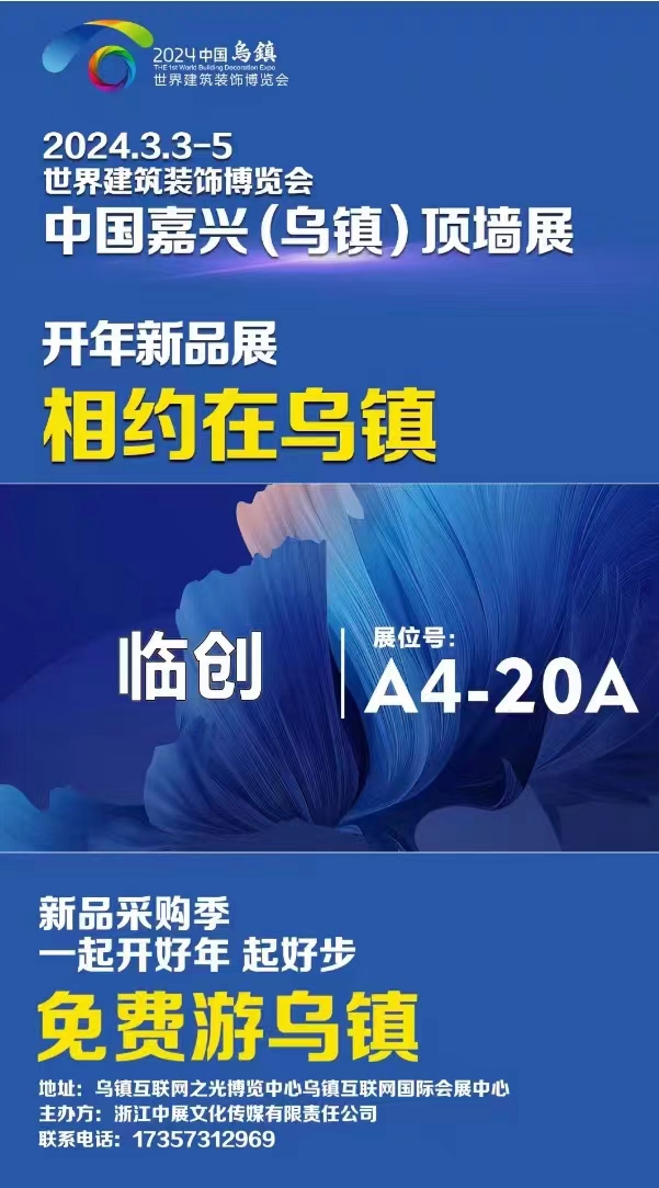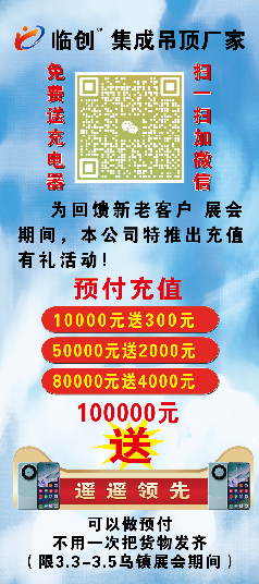 2024年3月3日-3月5日,臨創(chuàng)集成吊頂團(tuán)隊(duì)由吳總帶領(lǐng),展位號A4-20A號與大家會(huì)晤,現(xiàn)場帶來多款我廠暢銷爆款產(chǎn)品。同時(shí)本公司推出了充值有禮活動(dòng)。